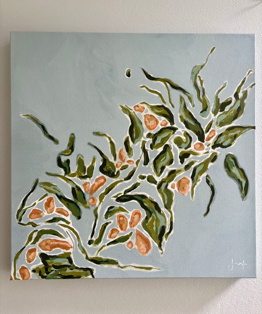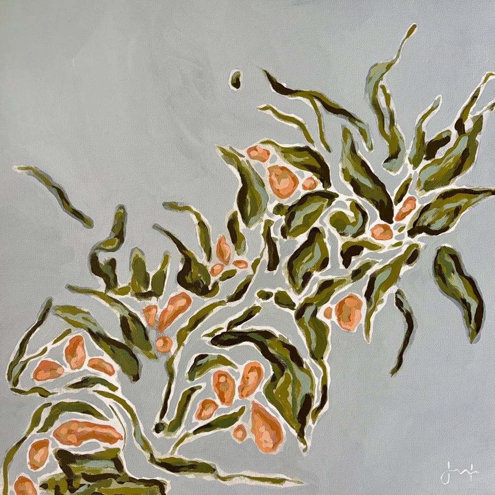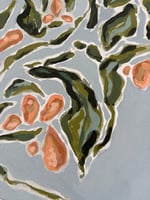 Petals, leaves, and oysters in a soft, gray-blue. Part of collection released August 2025.