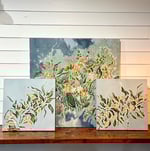 Petals, leaves, and oysters in a soft, gray-blue. Part of collection released August 2025.